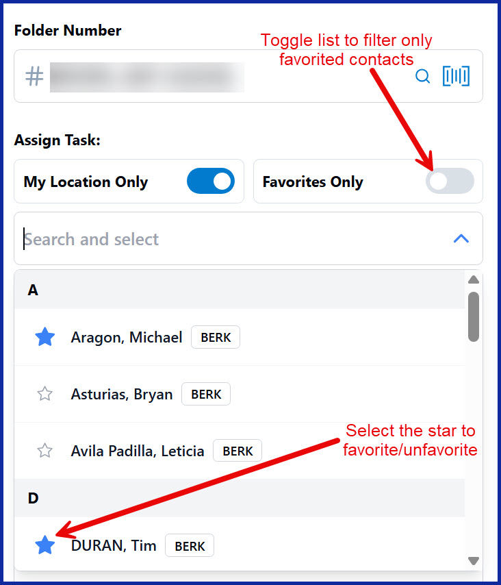 You can now 'star' your most frequently contacted team members in the internal contact list in NexsyisNow. Once a team member is favorited, you can filter your contact list to "Favorites Only" when assigning tasks or sending team messages.